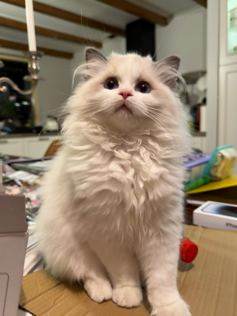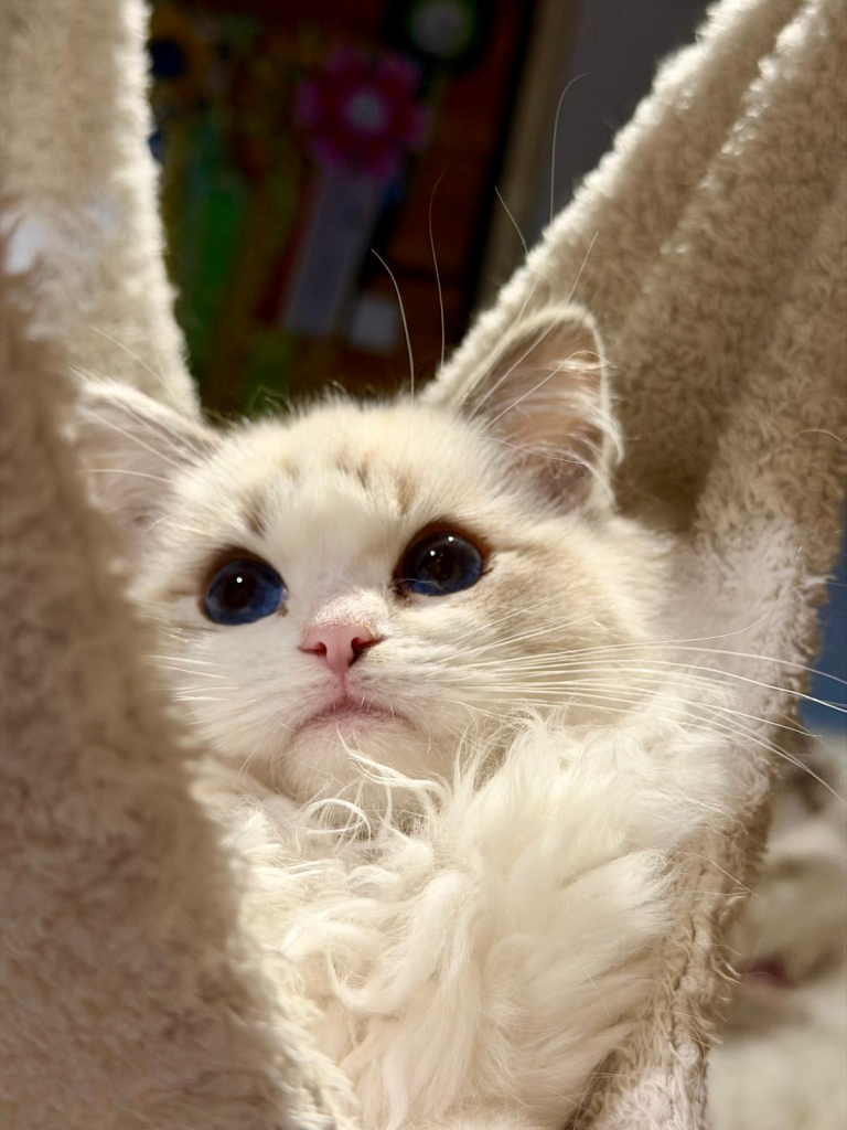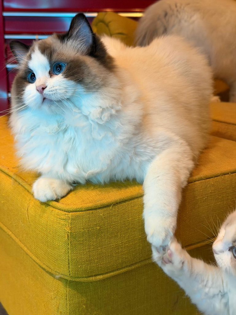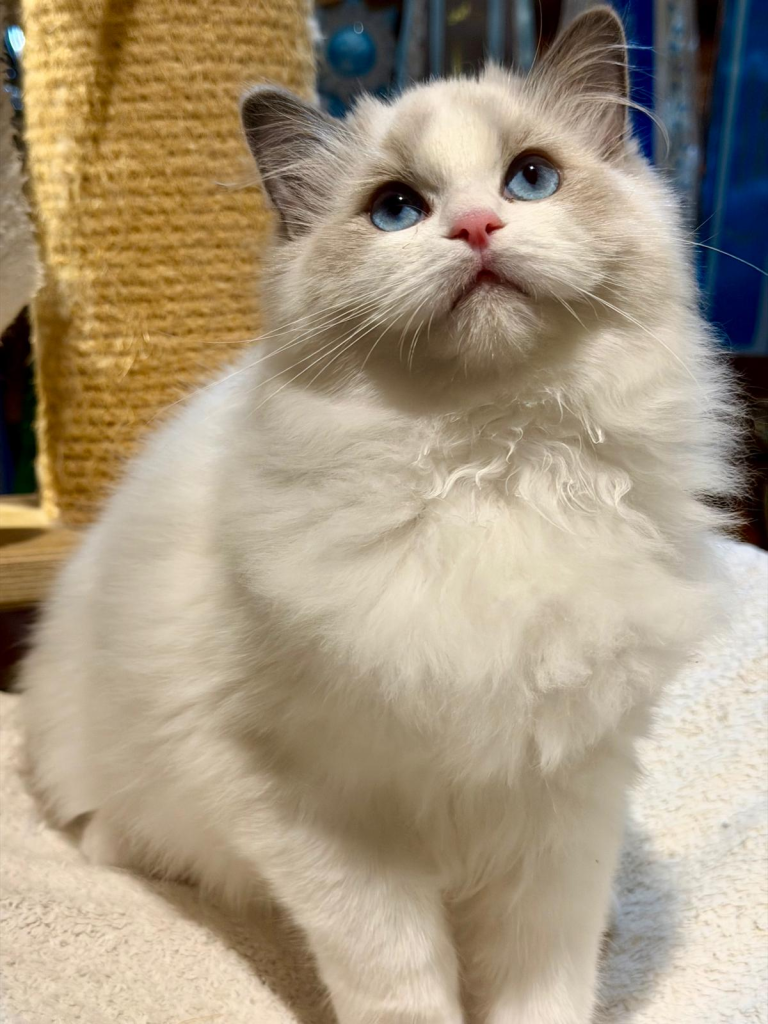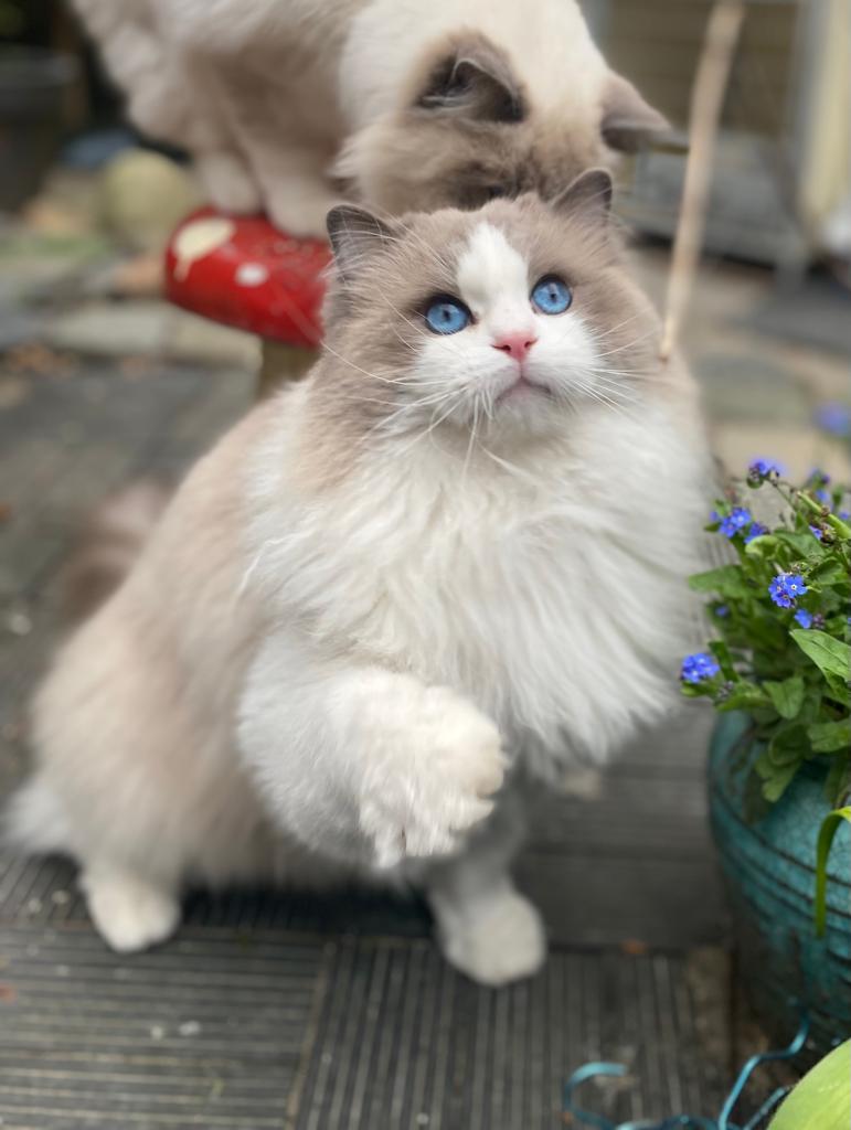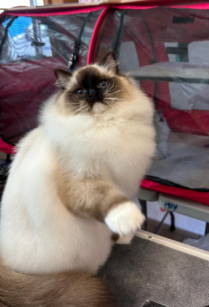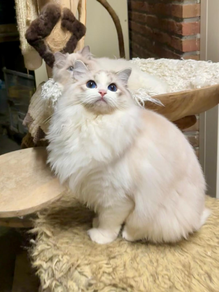 Bij ons is op 11-8-2024 June geboren een seal mitted poesje. Vader: Jaquet Marzog Mecoté kater afkomstig uit Noorwegen en Groot internationaal kampioen in de kleur Seal mitted. Moeder: Griet van de Hippe Kip Blue Bicolor ook bij ons in de Cattery geboren ze is International Champion. June gaat Griet vervangen, Griet gaat met pensioen. June heeft een super karakter net als haar ouders ze is relaxed en wil heel graag met je kroelen en spelen dat vind ze ook heel leuk ze heeft de super zijde zachte vacht zoals dat gewenst is bij de ragdoll. Ook June is al op show geweest en heeft mooie jury raporten ze is al Kitten Champion. Op de leeftijd van 1 jaar wordt ze onderzocht op HCM,PKD,Cin,five en Felv de DNA test is opgestuurd we wachten op de uitslag. June is een ster op show in de kittenklasse van 3 shows al 6x Best in show Ze mag zich dus nu de mooie Titel Junior Winner achter haar naam schrijven. Beste kitten van 2025 mag nu ook NW’25 voor haar naam schrijven.